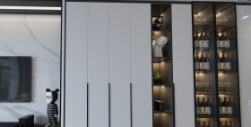 这套 115 ㎡ 的房子位于广东深圳,屋主是位单身白领女性,喜欢有质感又简约的空间。设计师拆掉隔墙,打开了书房,成为公共空间的···